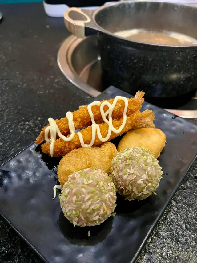 大部份嘅火鍋配料都係喺外面嘅自助吧夾。基本嘅丸類、蔬菜、麵食都有供應。款式夠快齊備,而且排列得幾整齊。當中我就最鍾意金牛丸同埋芥末貢丸,兩款我哋都encore咗好多次😎