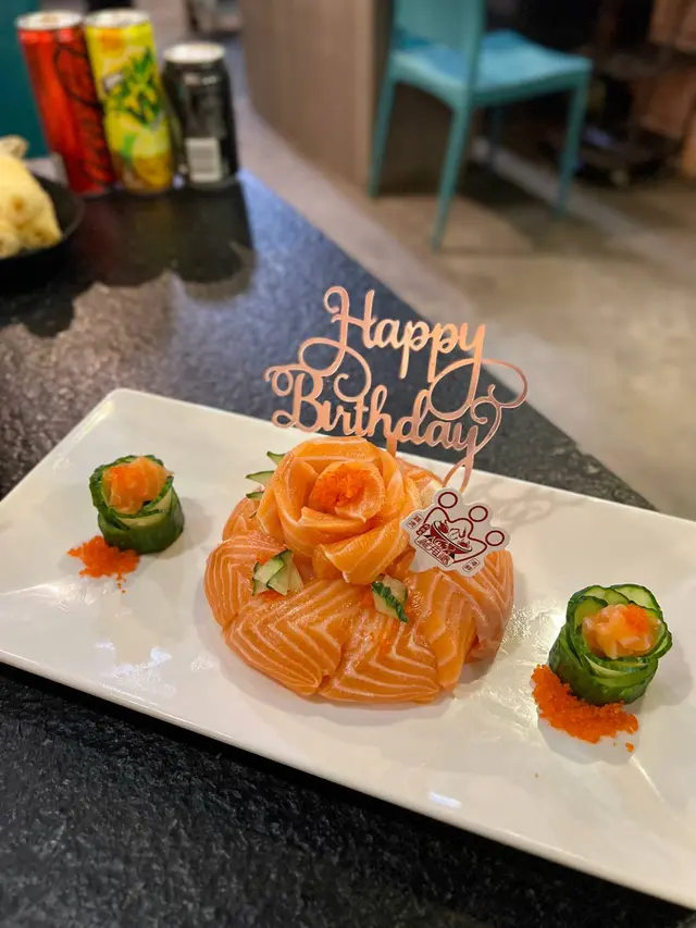 除咗一次性嘅海鮮拼盤,套餐仲可以任食海蝦、脆鯇片、脆鯇骨腩同埋白鱔片 。任食海鮮當中就可以encore三文魚刺身🐟 今次朋友生日,我哋特意叫餐廳預備一個三文魚蛋糕,用嚟打卡一流🎂