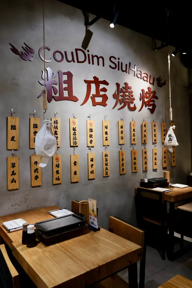餐廳會細心地先擺放暖盤, 將串燒保持適當溫度, 枱上設有辣椒粉及孜然粉, 調製個人口味