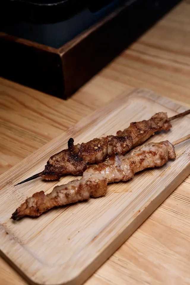 串燒水準整體不錯, 醃製後味道很入味, 熱辣辣香氣十足, 烤美國牛肩肉口感柔軟、散發滿滿肉香, 特別喜歡泰式小豬頸肉, 肥瘦適中、烤過後更惹味