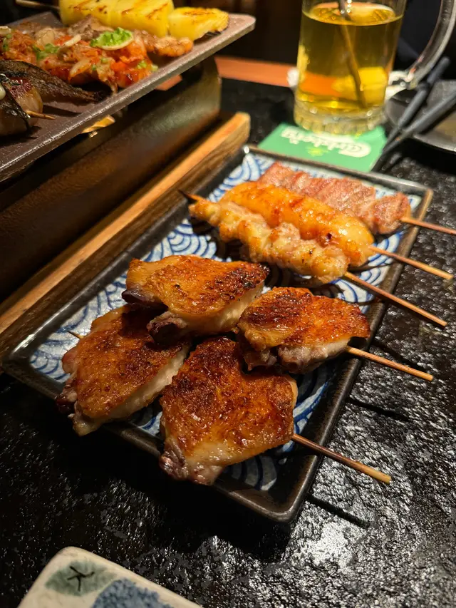 一串兩嚿,免治雞肉軟骨好飽滿,連冬菇食非常好食。