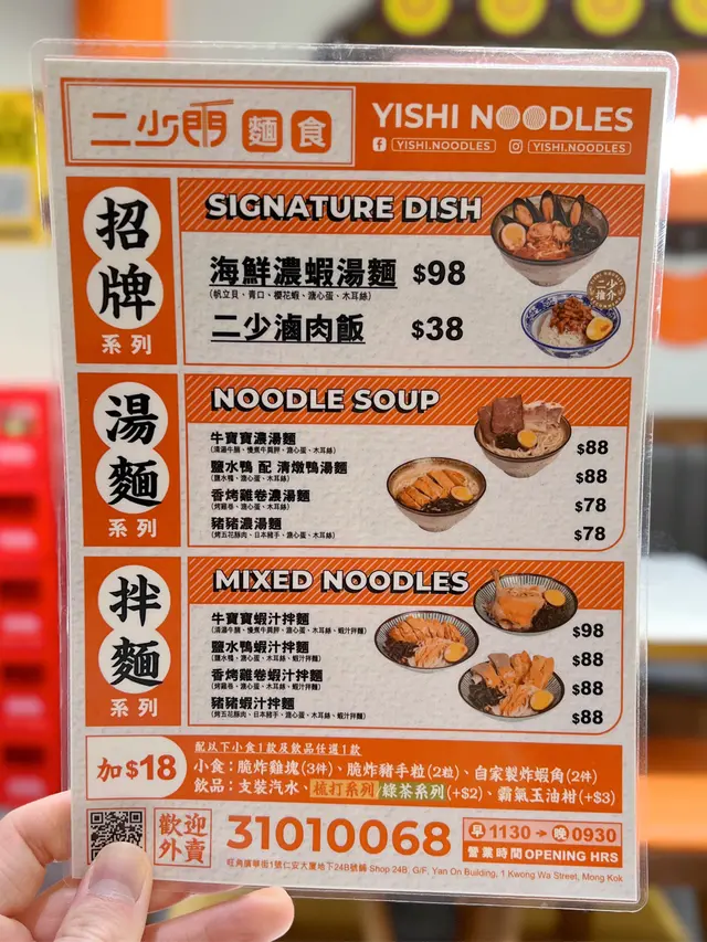 菜單方面,有招牌、湯麵及拌麵三大系列,可以優惠價$18加配小食及指定飲品,亦可再加錢升級飲品。