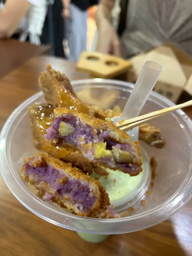 薯餅係即叫即整,熱辣辣~ 好重紫薯味同甜味,紫薯好綿密… 加埋栗子粒粒,令口感再豐富啲…
