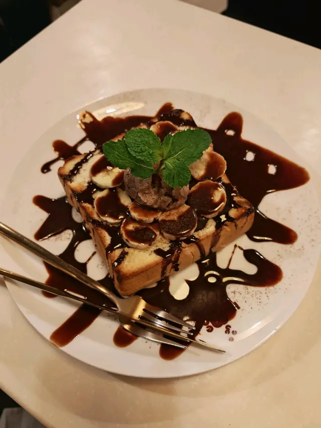 呢個香蕉雪糕多士非常邪惡, 多士上面鋪滿朱古力醬、忌廉、香蕉, 同埋仲有一大舊朱古力雪糕, 見到都已經流曬口水, 朱古力醬非常香甜, 配埋香蕉同多士, 非常好食。