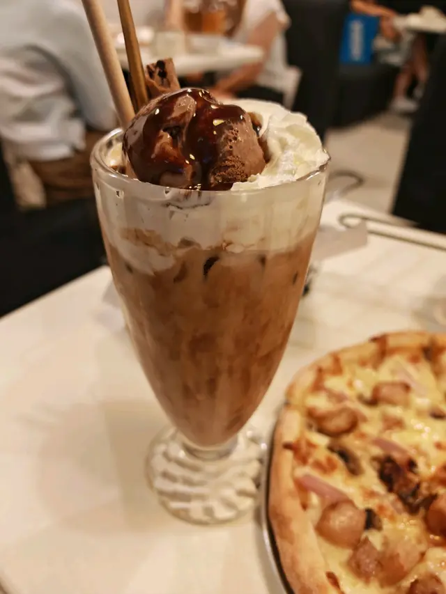 朱古力咖啡配上朱古力醬, 忌廉, 仲有雪糕, 完全充滿黑森林的朱古力風味。