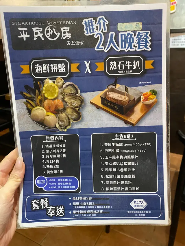 🌟「海鮮拼盤x熱石牛扒」二人晚餐