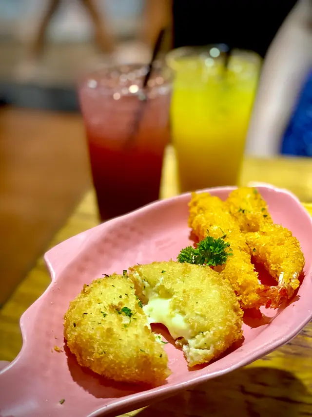 揀咁吉列蝦&蟹肉忌廉薯餅✨兩者都炸得好香脆🔥特別鍾意個薯餅,切開係流心creamy芝士忌廉加蟹肉🥰