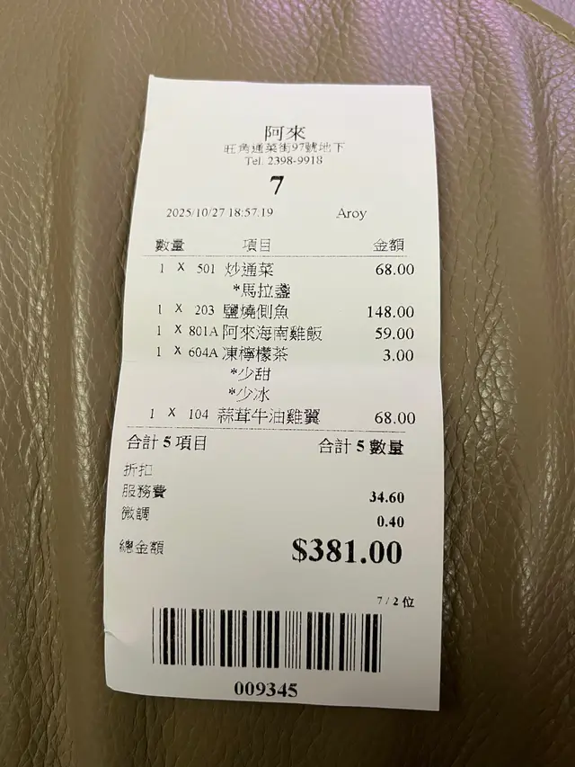 旺角貼地泰菜 地點方便誠意用心 foodloverrr3等级42025-10-27 Follow 旺角出名多好嘢食,今晚嚟到位置整方便嘅阿來,價格又貼地又親民,性價比幾高鹽燒側魚絕對係誠意用心製作,外皮烤焦,魚係剛剛熟透嘅狀態,又嫩又滑,中間香茅味參晒出嚟,加埋鹽好香口好惹味海南雞飯絕對經典味道,黃薑香好突出,海南雞去晒骨好貼心,香濃嫩滑蒜蓉牛油雞翼皮脆肉嫩,啖啖都食到牛油香蒜,馬拉盞通菜新鮮嫩綠,夠晒鑊氣,檸茶香濃解渴套餐同單點選擇都多,上菜有效率,食物質素唔錯,環境光尷乾淨,值得推介俾大家The above review is the personal opinion of a user which does not represent OpenRice's point of view.LikeShare旺角貼地泰菜 地點方便誠意用心 阿來泰式地道風味 https://s.openrice.com/QrLT08FXU00Report Post Ratings4Taste4Decor4Service4Hygiene5ValueDining Method堂食