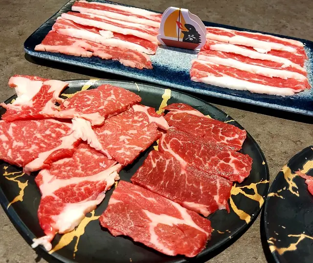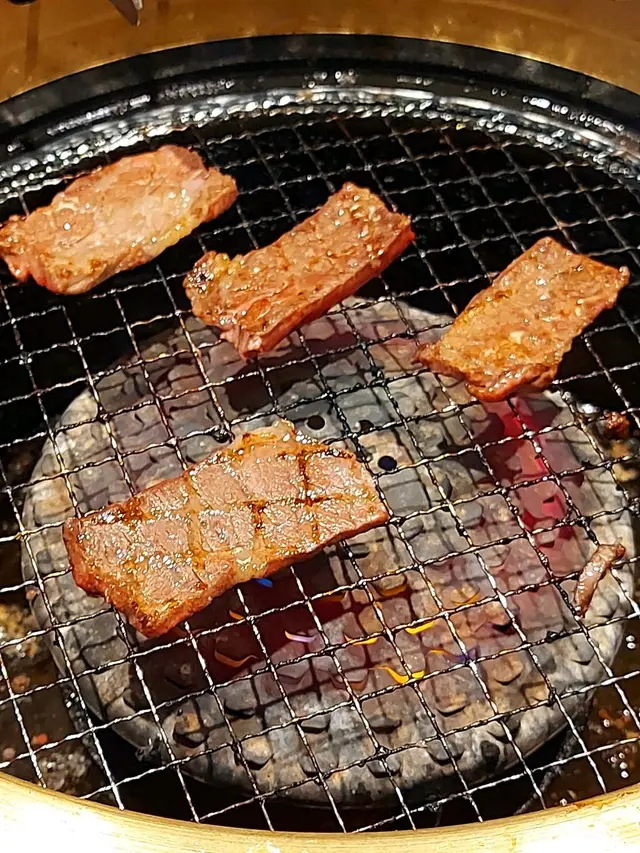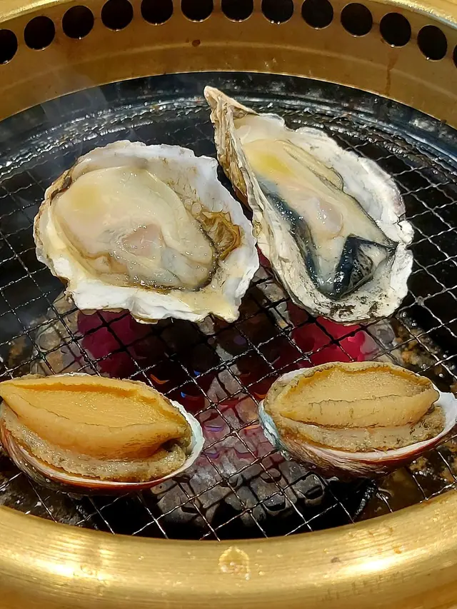 一開始會上頭盤澳洲和牛海鮮盤,好吸睛,打卡啱晒!肉類包括:澳洲和牛上級牛胸肉油膩分佈均勻,入口又香又滑、牛舌亦有水準,好咬口,仲有和牛肉眼芯、和牛特上牛肋肉、特選牛小排、美國牛胸腹肉等都好高質,海鮮有法國黃金螺、原隻鮑魚燒、帆立貝、青口和大海老~ 等我地可以先試左牛嘅不同部位和精選嘅海鮮,之後按喜好encore喜歡嘅款式~