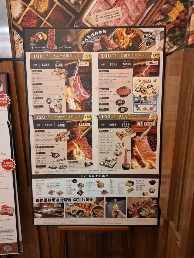 餐廳呢度有4種價錢嘅套餐可以選擇,我地揀左Lv3 澳洲和牛海鮮放題,有超過128款美食,以及自助專區40種美食,好多選擇喔!仲可以免費暢飲啤酒或清酒啊!