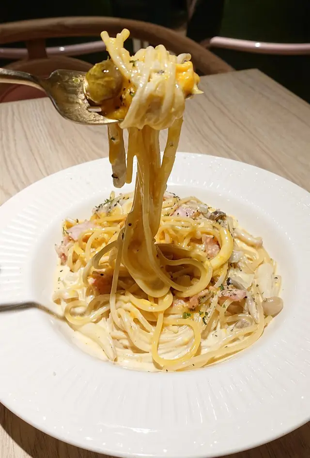 另外我們叫了日本直送雞蛋卡邦尼意粉, 日本直送雞蛋出名滑而且蛋味出眾, 配上卡邦尼意粉是不錯的配搭, 不過當相公先食了海膽汁黑松露意粉後才吃這個卡邦尼意粉, 卡邦尼意粉瞬間給比下去了, 因為味道上當然沒有前者那樣 '搶鏡' 的說, 但如果好似我咁, 先吃卡邦尼意粉, 其實味道也不錯啦~