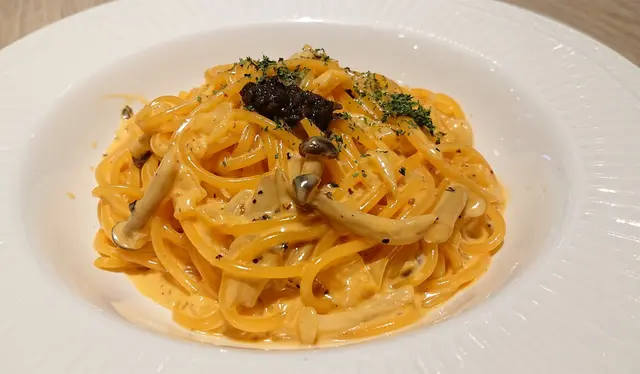 在店員的介紹下 我就叫了這個海膽汁黑松露意粉 (+HKD10 升級), 陣陣黑松露的香味撲入鼻腔中, 與充滿著濃郁的海膽汁, 加埋一齊, 沒有誰蓋過誰, 反而將大家彼此的優點更為提升, 同事令這個意粉的格調提升了不知多少倍呢~ 好好味啊~