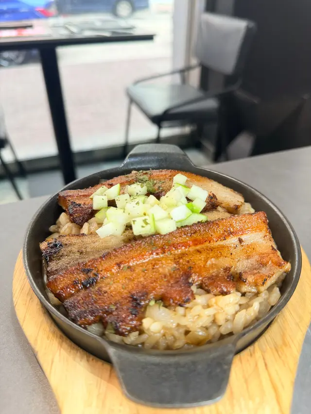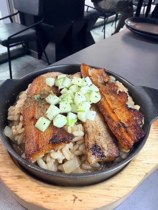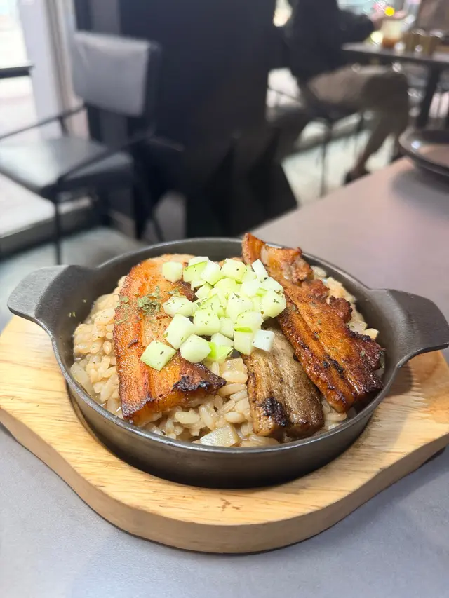 豬腩燒到外皮微脆,煙燻香氣滲入軟嫩肉質,黑啤醬汁燴飯帶微微麥香,層次豐富唔膩口!
