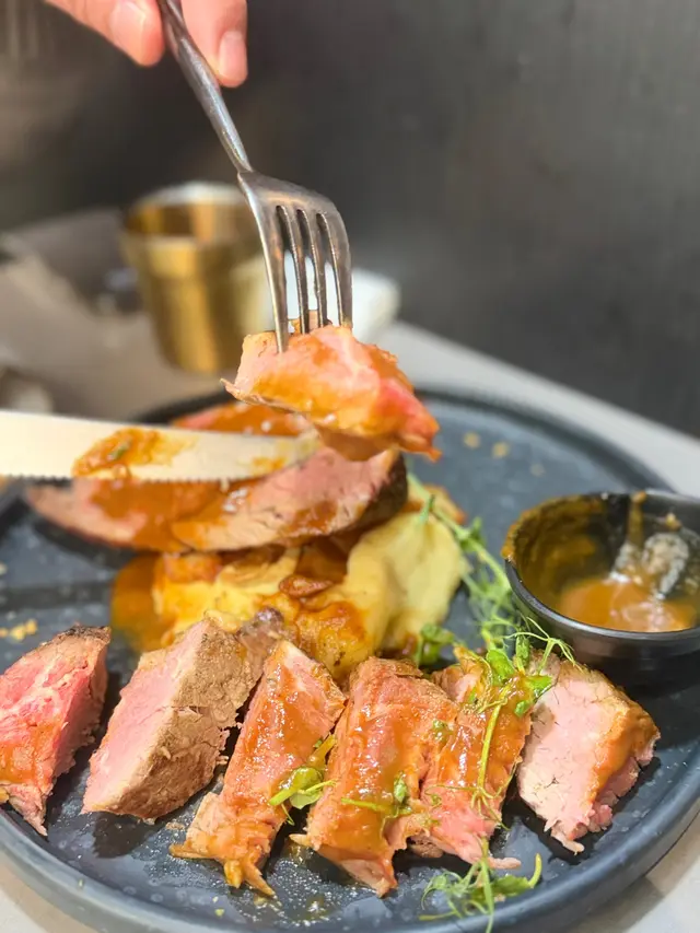 牛柳切開粉嫩,入口腍滑帶焦香,黑椒醬提鮮零死角。🧀 雙重芝士薯蓉混脆蒜粒,鹹香幼滑,加埋焦糖洋蔥解滯,份量超慷慨✓