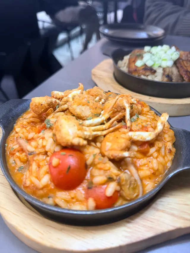 🦞 炸蟹仔番茄醬意大利飯:蟹仔炸得金黃酥脆,咬開鮮甜juicy,配搭新鮮番茄醬酸甜開胃,每粒米都掛滿醬汁❗️