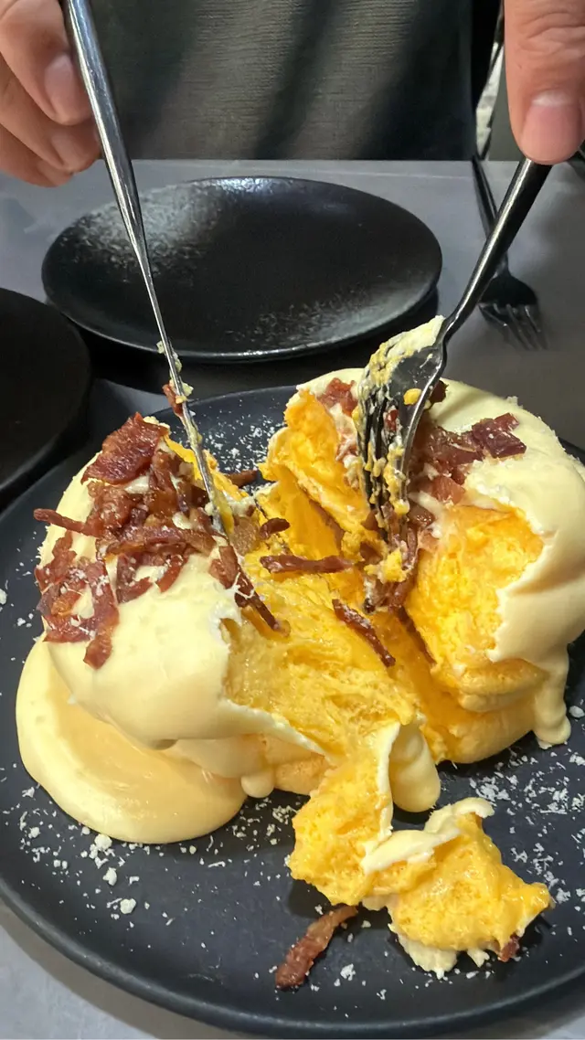 🍰 邪惡芝士醬梳乎里班戟配煙肉