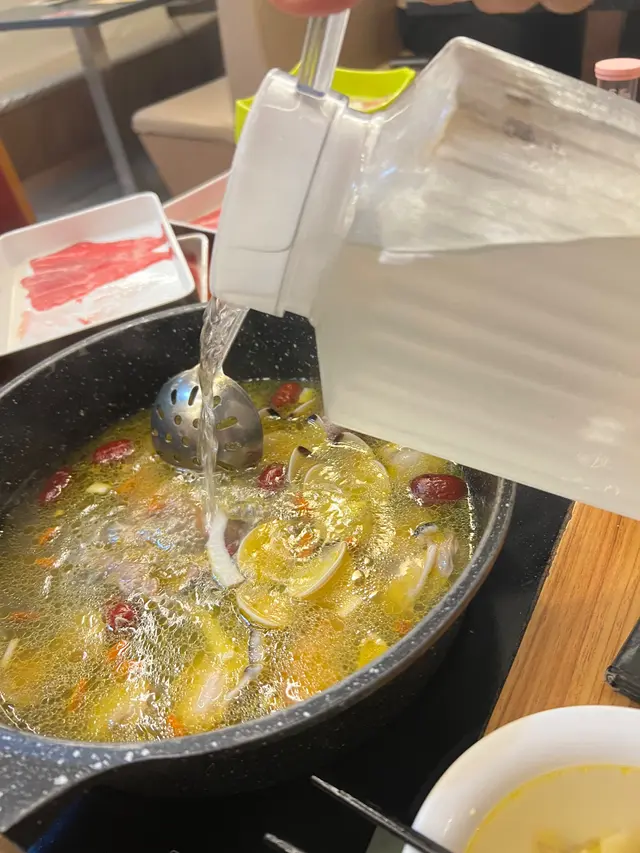 椰子雞煲湯底清甜鮮爽,椰香濃郁不膩,雞肉嫩而不柴,煮開後先喝湯超暖胃。放題食材種類豐富,雪花肥牛、黑毛豬梅花、頂級小肥羊新鮮夠味,還有紐西蘭青口、廣島蠔等海鮮🦐