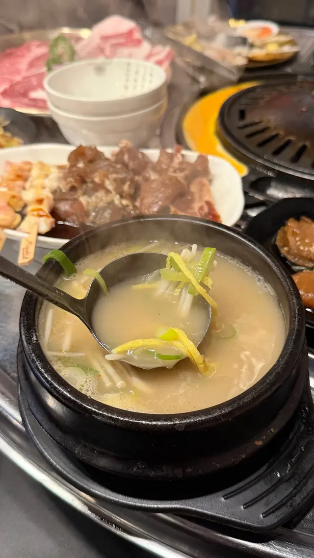除了燒烤,韓式料理也任食🍽️:香脆煎海鮮蔥餅、料足鰻魚石鍋拌飯🍚、爽口辣拌冷麵、Q彈韓式熱狗🌭等小食,燒肉空隙填肚超合適~飲品啤酒暢飲🍻,甜品杯裝乳酪選擇豐富🍧,吃喝全程不斷檔!