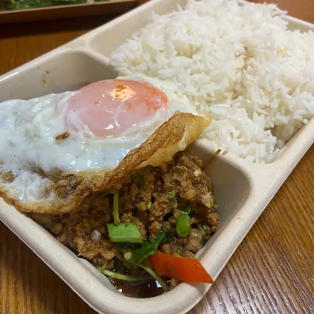 這個是其中一個新菜式,本來以為平平無奇但有令人驚艷!雖然那一隔好像沒有裝到很多,但最後其實會不夠飯來伴😂豬肉碎完全不會很肥,而且真的蠻辣,不會因為香港人的口味而調成微辣。Basil香味很香,但是最後如果沒有白飯一起吃會有點鹹。煎蛋也是另一highlight,把蛋黃搓破跟飯和肉碎混在一起,多了一份creamy和蛋黃香