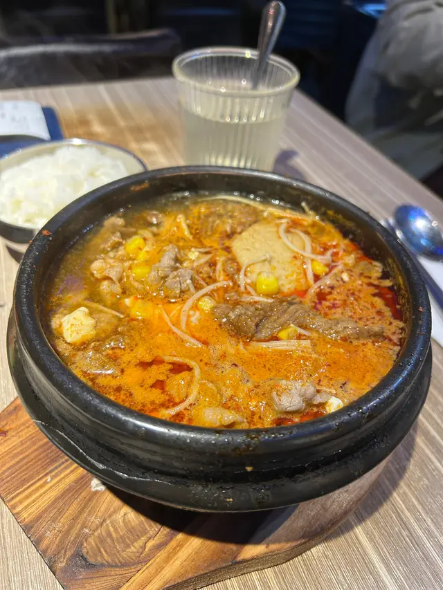 呢個湯係以石燒鍋上上枱嘅時候熱辣辣,足料而肥牛同豬肉都唔會煮到韌,整體成個豆腐鍋係偏辣,但係今日咁凍暖身就一流,仲要配埋入晒味嘅豆腐同豆皮,食落就更加滿足、健康!