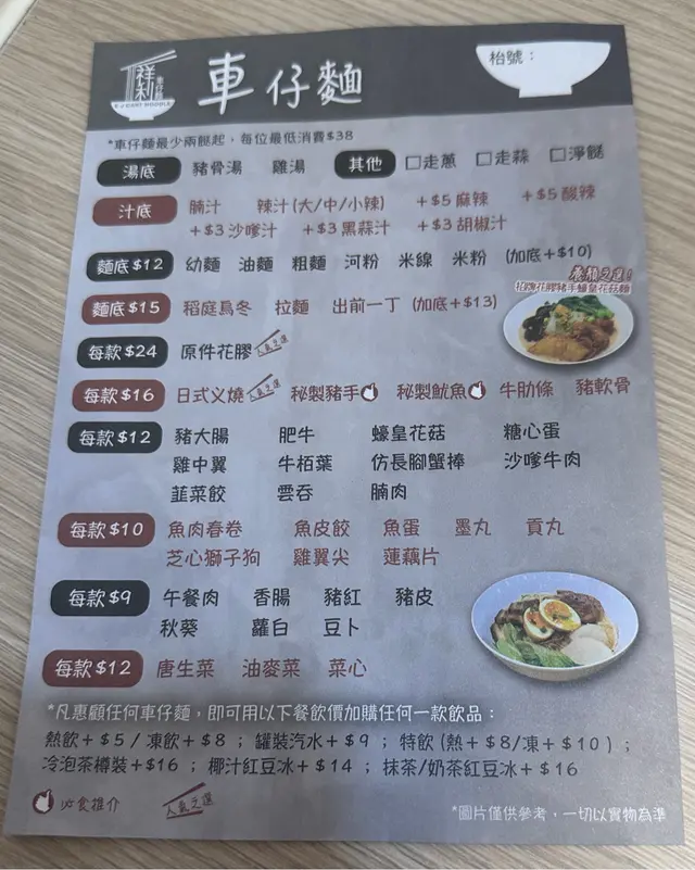 ⦁自選車仔麵(最低消費$38)