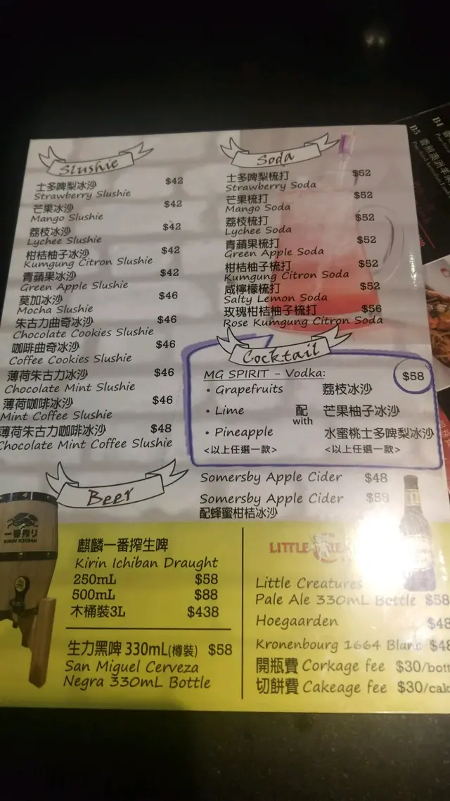 至於饮品也值得一讚,我們點了Cocktail 沙冰, 十分特別。可以自由選擇不同cocktail 配不同味道沙冰,尤其係配埋我地個餐, 非常啱飲!又大杯!又抵!
