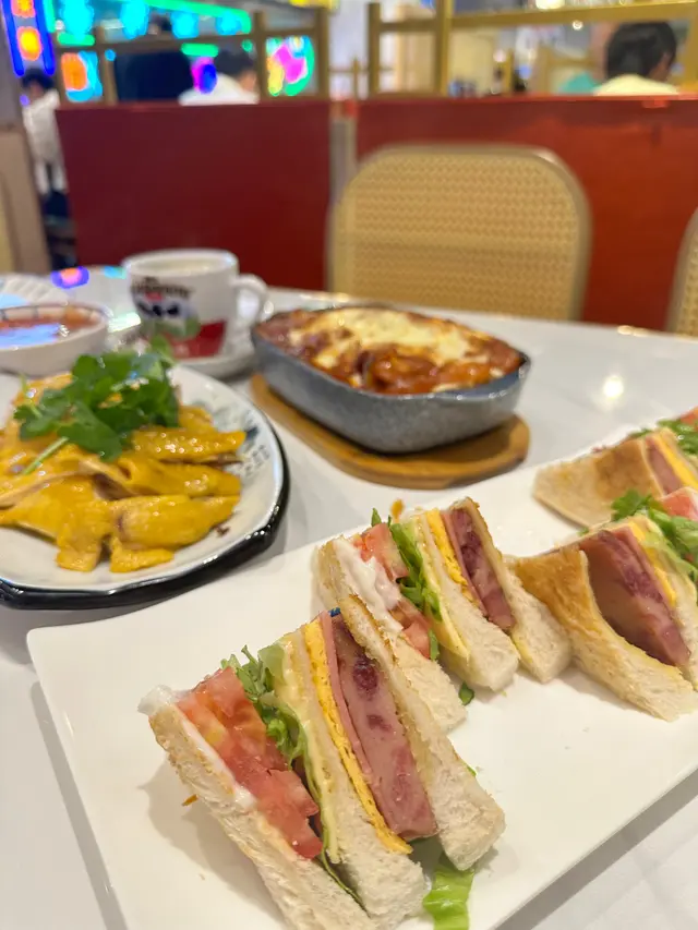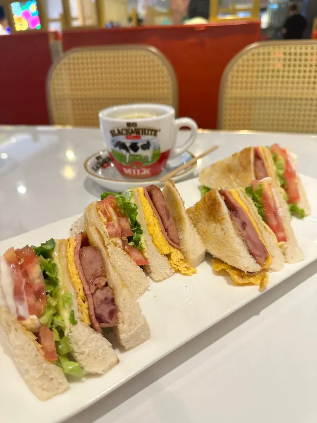 一份有四大嚿三文治,每舊都好足料😋,有煎到好香又厚切嘅午餐肉、🍅蕃茄、🥬生菜、芝士🧀、火腿🥓同埋蛋🍳,每一口都食到淡淡嘅材料😚,抵食之選。