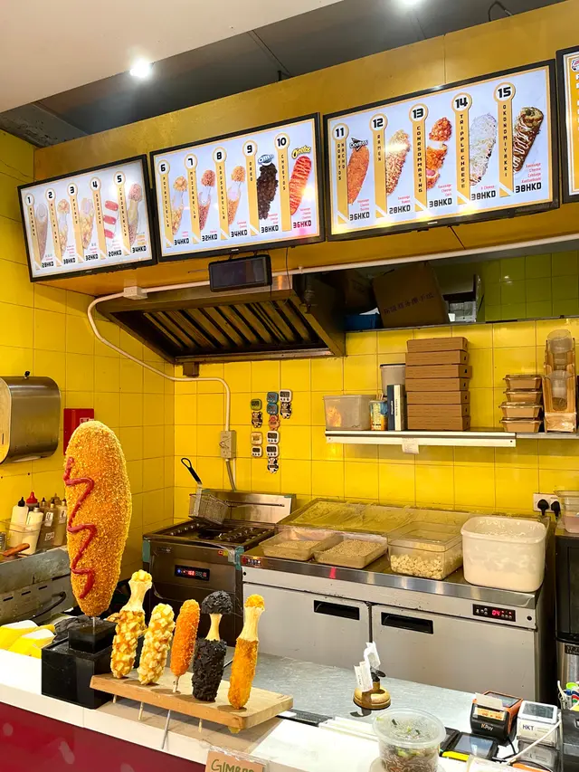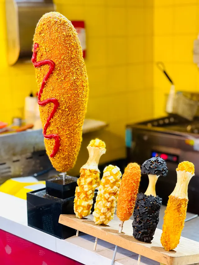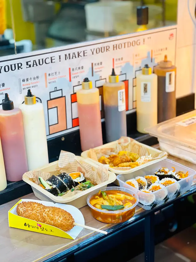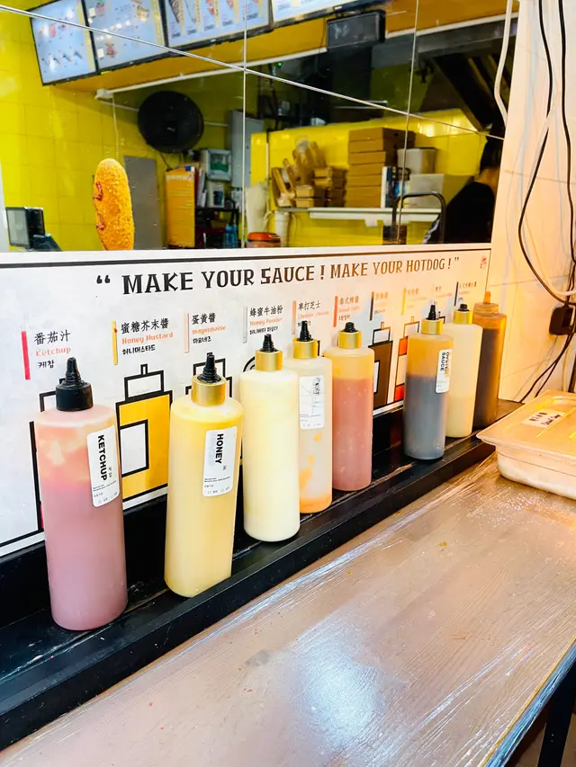 熱狗棒都即叫即炸,到手熱辣辣。酥脆外皮裡是鬆軟麵團和拉絲芝士,店內還提供各式醬料,不同配搭創出不同滋味。