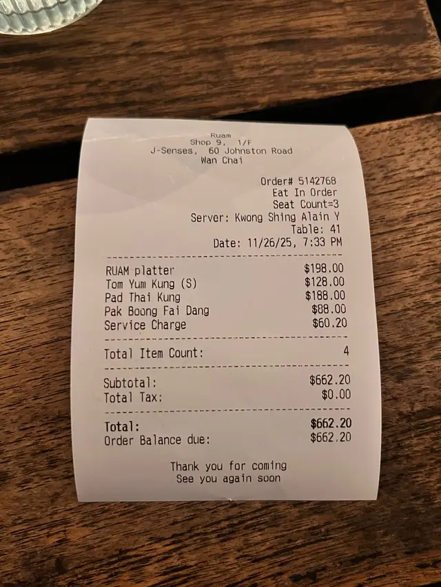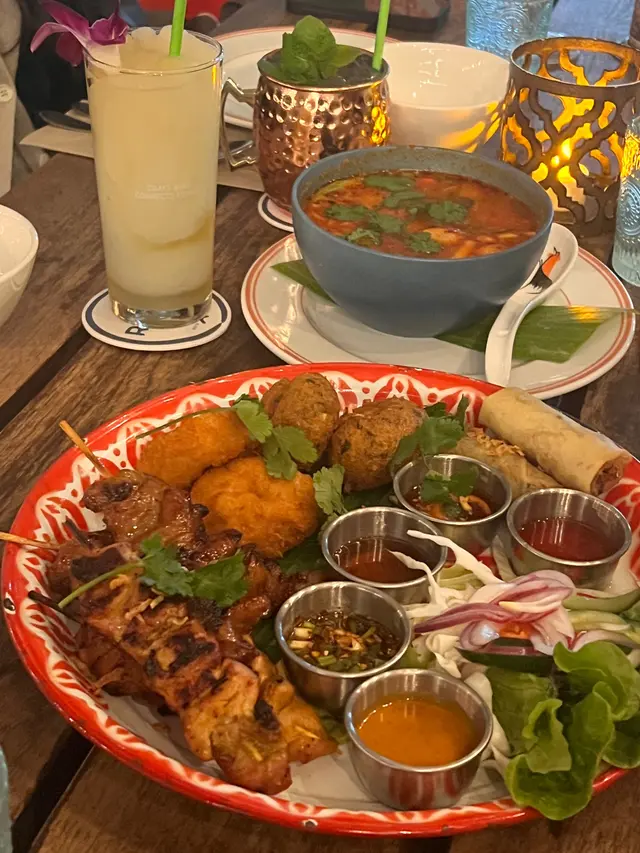 明星同款餐廳!很chill的環境 or#Tm65550070等级22025-11-30 关注 灣仔明星同款隱世泰國餐廳!今天和姐妹約在灣仔聊天,馬上想到這家餐廳~我們坐室外,天氣涼快氣溫剛剛好,整個氣氛很chill。旁邊都是外國人一群人的聚會,也有人慶祝生日🥳餐廳內有很多polaroid,連韓星henry、juno、香港小姐冠軍等等明星都來過這餐廳!氣氛很舒服,很適合聊天。和店員互動性很強🤣答對問題還送我們甜品!菜品好吃,份量很足。我們點了小食拼盤、蝦冬陰功湯、炒通菜、金邊粉~ 甜品都很值得一試!如果和朋友想輕鬆聊天,這裏真的很適合!以上食记乃用户个人意见 , 并不代表OpenRice之观点。赞好分享明星同款餐廳!很chill的環境 RUAM https://s.openrice.com/QrLT0fMTV00检举 张贴 评分5味道5环境5服务5卫生5抵食用餐日期2025-11-26用餐途径堂食人均消费$220 (晚餐)