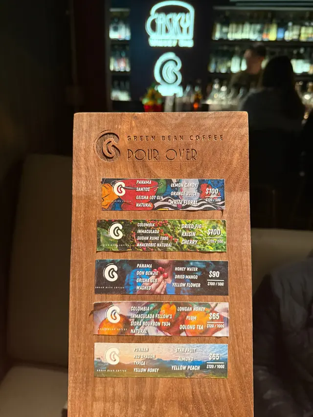 店主推介咗兩款手沖咖啡分別係哥倫比亞同埋巴拿馬嘅咖啡豆