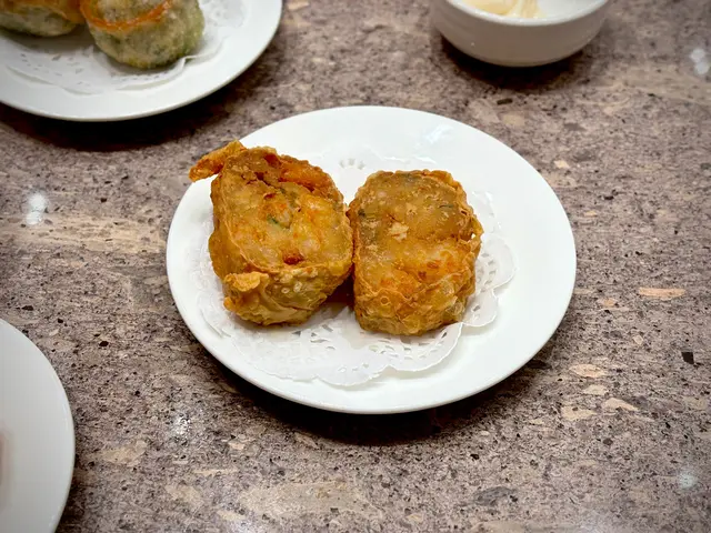 脆炸手工韭菜餃(+$18),外皮薄薄炸得金黃起泡,內裡的餡韭菜新鮮,香而不膩。🥟🌿