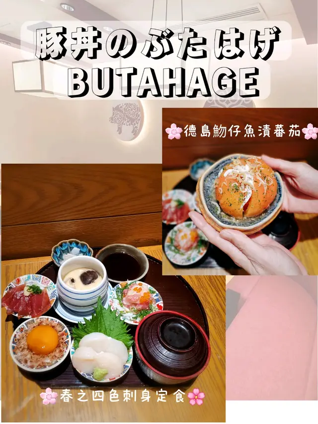 #BUTAHAGE #豚丼のぶたはげ #春之四色刺身 #醬油漬吞拿魚配魩仔魚丼 #醬油漬蛋配木魚絲丼 #帆立貝丼 #拖羅海鮮丼 #徳島魩仔魚漬蕃茄 #北海道