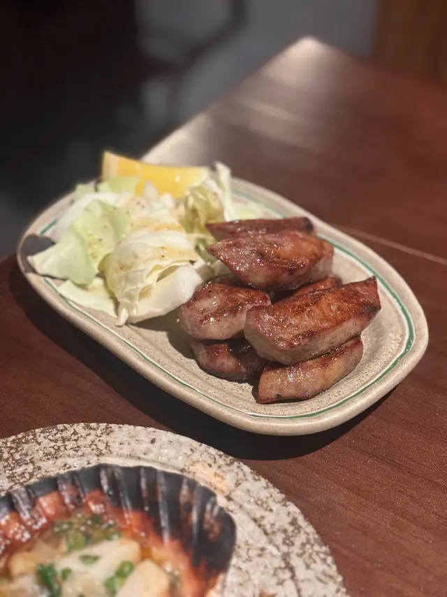 鹽燒牛舌👅牛舌係厚切嘅,大部分咬落去都好爽口,而且keep到好多汁,鹽嘅份量落得啱啱好,火候控制得好,配埋椰菜可減輕油膩感~