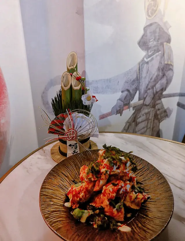 🍗瀑布火山唐揚雞炸(Hk$128): 香脆炸雞夠Juicy,配上青椒仔、脆紫菜和特色醬汁,更為惹味