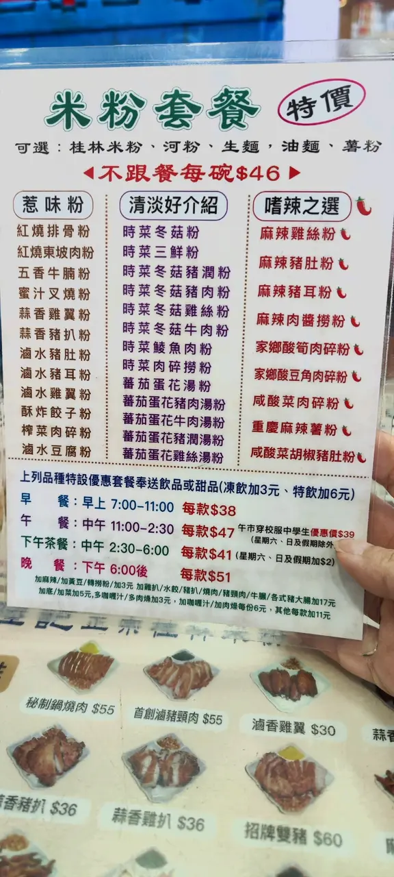 今日入來元朗, 試下佢, 望下餐牌, 見到有下午茶餐, 唔想食豬肉, 粉有桂林米粉, 生麵, 河粉, 油麵同薯粉, 佢間野叫桂林米粉無理由食其他🤣, 叫左時菜冬菇豬潤桂林米粉, 配熱檸茶, 等左一陣先來飲品, 再等多左一陣米粉也來, 先飲啖湯, 好似有豬潤或豬肉煲過, 有d甜味, 好飲😍, 豬潤唔係好大塊, 其實有d碎, 不過佢唔係爽脆亦唔係好粉, 叫合格😅 冬菇係一片片, 都有d菇味, 都有好多生菜😋, 再看乜嘢叫桂林米粉, 原來係米線, 不過比一般外面食較粗, 好味好滑🤭, 以下午茶餐來計, 份量都算多😘👍 包熱飲$41, 其實算抵食🥰💞