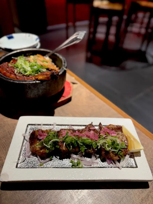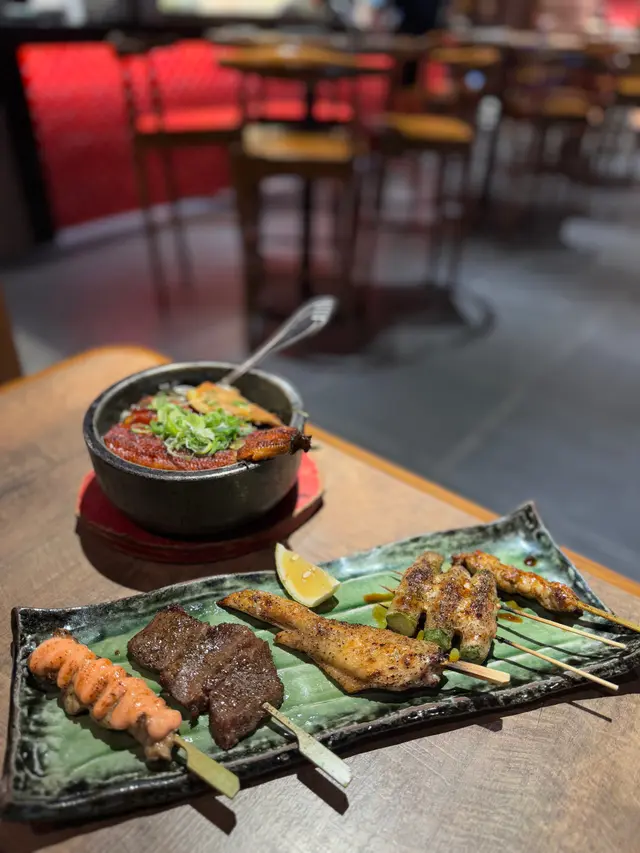 跟住就輪到串燒大軍出場啦!我地散叫咗串燒:雞頸肉、雞翼、明太子雞肉、牛舌、牛小排,仲有豚肉秋葵卷,呢啲都係串燒嘅經典之選,全部都好味!雞頸肉烤得啱啱好,脆卜卜,肉又嫩;雞翼調味啱啱好,唔會太鹹;明太子雞肉就辣辣哋,幾惹味;牛舌厚切,幾爽口;牛小排肥瘦啱啱好,入口即溶;豚肉秋葵卷就幾清新。