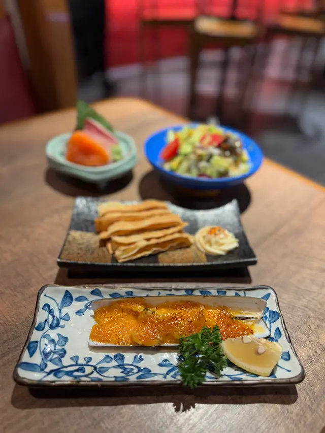 我就揀了幾款$38嘅美食。大蜆好鮮甜,肉質好飽滿!蟶子配上黃金醬焗更香。刺身方面,三文魚油脂豐富,油甘魚厚切。