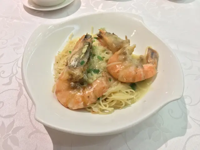 天使麵加入左蒜蓉碎炒香,香口滋味,啖啖蒜蓉香。虎蝦大大隻,肥美厚肉,爽口彈牙