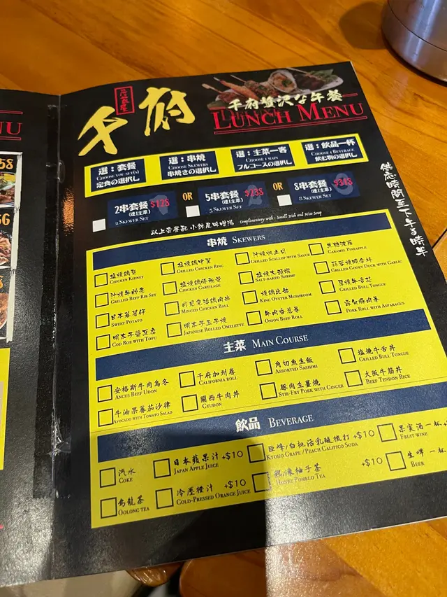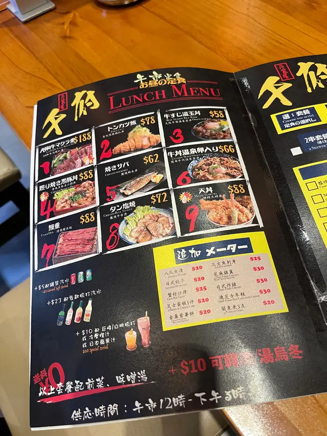 入到鋪頭,環境幾舒服,lunch時間食即刻送上麵豉湯,湯夠熱略鹹。Menu 選擇幾多,有丼物、日式定食、串燒。