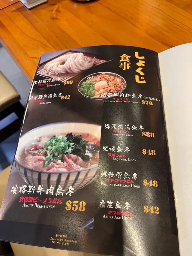 湯底入口淡而無味,然後就會出現小小鹽既鹹味,完全無豬骨湯味。作為一個湯底,完全唔合格。安格斯牛牛味不足,只係食到小小騷味,唔算韌。烏冬係稻庭烏冬,因為湯無味,所以烏冬無咩味。
