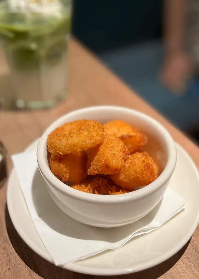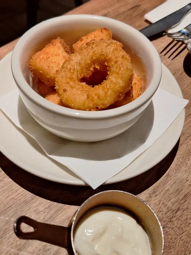 有兩款芝士,分別是mozzarella芝土圈及車打芝土粒。 炸到金黃色而且好酥脆,充濃郁奶香,更加做到拉絲效果, 芝士控必吃!