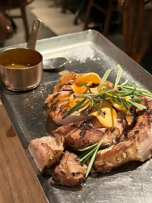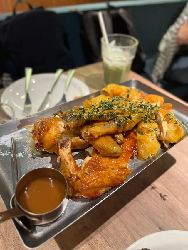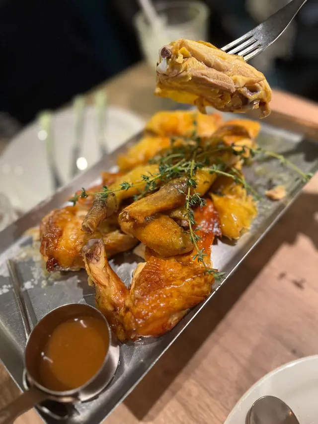 呢個製作需要50分鐘, 所以一坐低已經即刻order。等左咁耐果然無失望,外皮酥脆到好似炸子雞皮咁,而內裡肉質好鮮嫩,內汁保持得好好,每一寸雞肉都散發濃郁香草同牛油香氣 , 令人唇齒留香。份量好多, 兩隻大雞髀令人回味無窮。