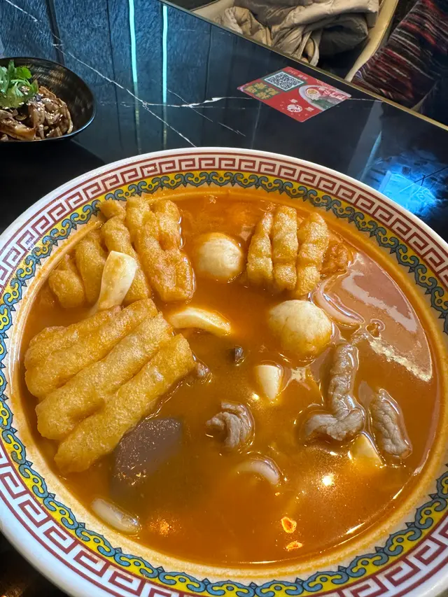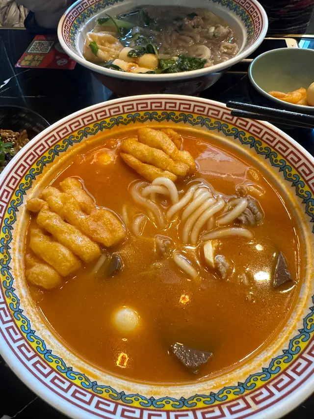 生椰番茄湯配番薯粉加鵪孰蛋,滑牛肉,牛黃候,鴨血 ,豆腐串!餐廳嘢食份量真係非常多,六個餸呢一個價錢嚟講真係唔算太貴,呢一區嘅價錢嚟講,CP值算係非常高!佢牛肉非常好食,食得出係新鮮嘅牛肉,豆腐寸就吸收晒蕃茄湯底嘅精華,非常吸汁同埋好食,墨魚丸亦都爽口彈牙係餐廳嘅招牌餸菜!都加咗鴨血,總共俾咗六件,份量都真係多同埋味道都唔錯!