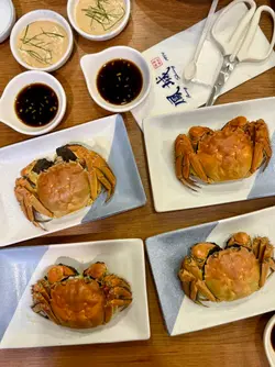 嘩!一隻一隻大閘蟹剛剛蒸起熱呼呼呈上,外殼燈黃黃好有色水,明顯靚貨!