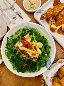 魚湯加入了薑片癖腥,翠綠嘅豆苗浸入魚湯減少草青味,不時仲食到帶點點酸甜嘅杞子粒,可以清一清口腔嘅濃味,豆苗同大閘蟹蛇羹呢個餐宴配搭,味道好夾。