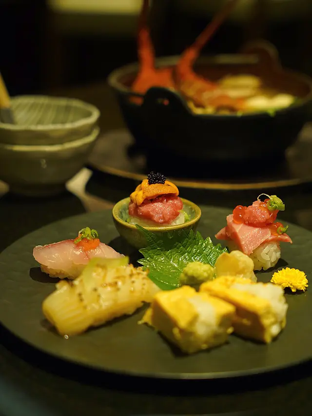 嚟得千兩當然要叫壽司啦,誠意推介叫壽司拼盤🍣!壽司包括;自家製江戶前日本甜蛋配柚子皮、千兩壽司(海膽吞拿魚蓉壽司杯)、大吞拿魚腩配鹽麴吞拿魚蓉、其中以下兩款仲要係新加入餐單😍;炙燒紋甲墨魚配海膽醬油壽司、北海道出產「沙甸魚壽司」,不過沙甸魚壽司因為無貨所以就轉成另一款豐州魚壽司🐟。