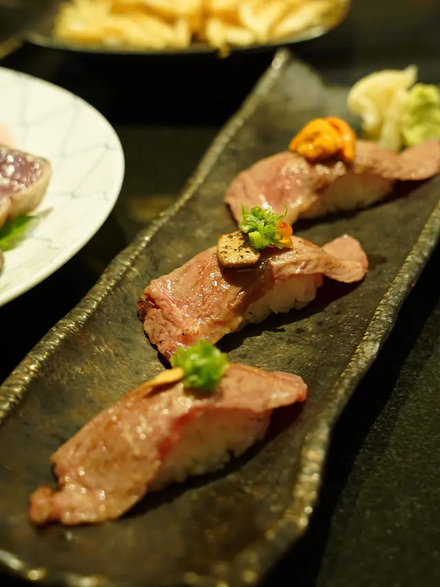 三款炙燒和牛用上日本產地🇯🇵,配搭鵝肝、海膽、香蔥蒜片。三款各有不同效果,口感絕對豐富~