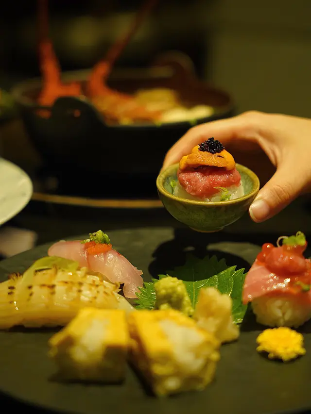 當中肥仔最喜歡千兩壽司杯,吞拿魚蓉上鋪上新鮮海膽+魚子醬,三款味道好配搭亦帶出鮮味🌊。