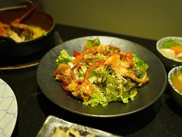 頭盤先叫個沙律做開胃菜,軟殼蟹炸得金黃酥脆,撈埋沙律食夠清爽!