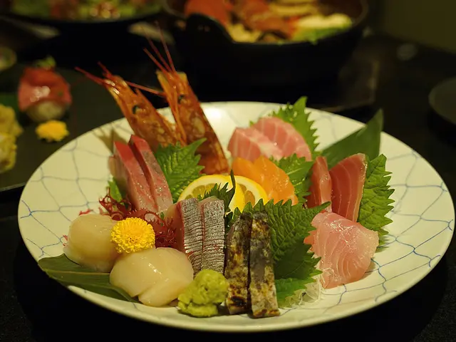雖然2人份量但相當大盤😳,賣相擺盤精美包括;(日本產)油甘魚、(靜岡產)藁燒鰹魚、(北海道產)珍寶帶子、三文魚、中吞拿魚腩、吞拿魚、油甘魚腩。